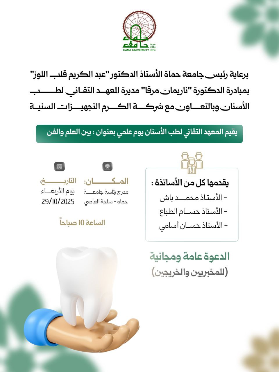 المعهد التقاني لطب الأسنان يقيم يوم علمي بعنوان: