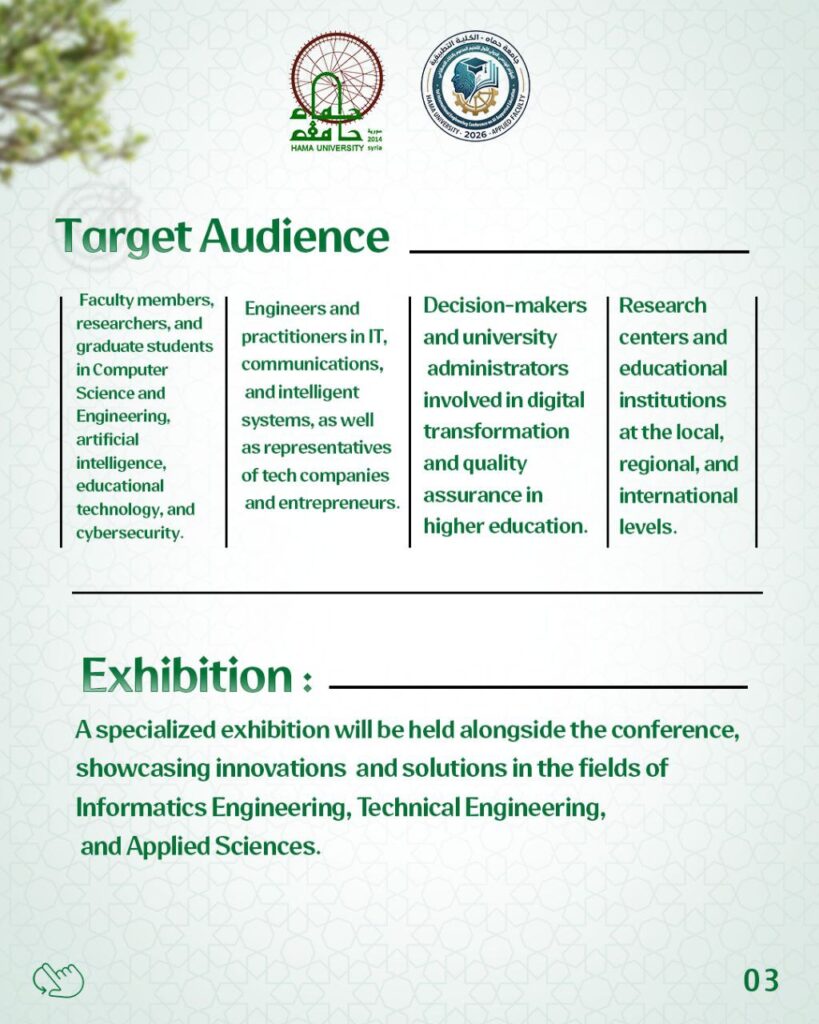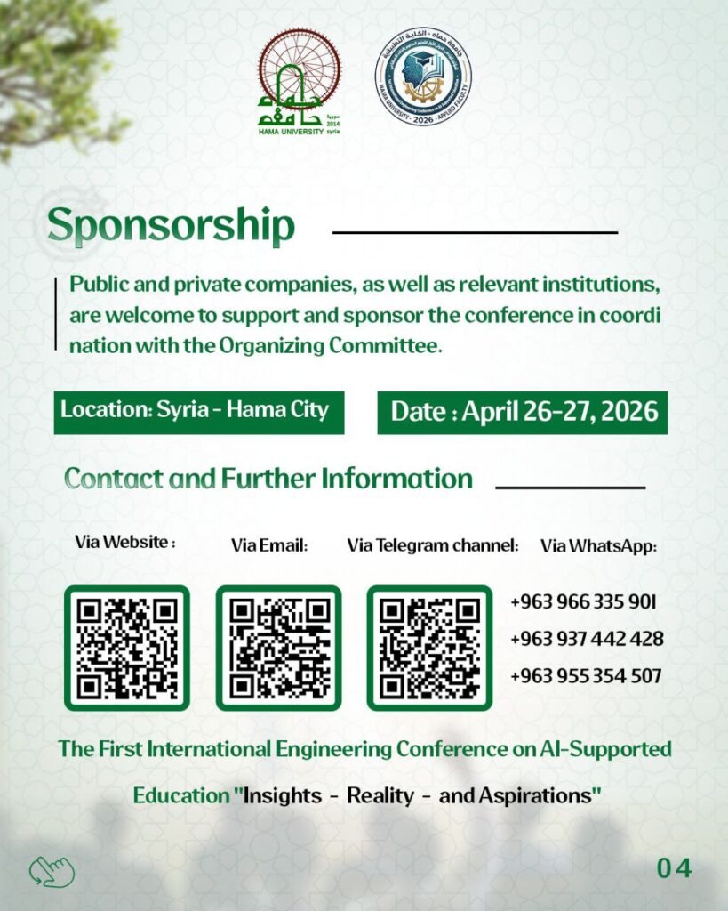 Hama University is pleased to welcome you to this international conference, which is being held under the auspices of the Applied Faculty.