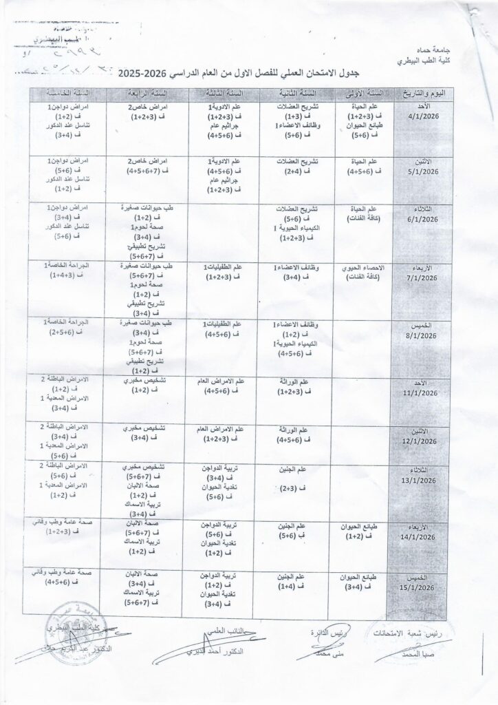 جدول العملي الفصل الأول 2025-2026 تنزيل