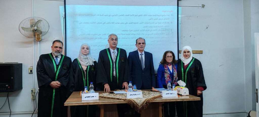 حضر جلسة المناقشة الأستاذ الدكتور “حسين العيسى” نائب رئيس الجامعة للشؤون العلمية، إلى جانب نخبة من أعضاء الهيئة التدريسية والمهتمين بالشأن التربوي، مما أضفى على الحدث طابعاً علمياً مميزاً يعكس تطور البحث التربوي في الجامعة.